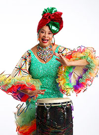 En färgsprakande fest där Maria tar med karnevalskläder och maracas som barnen får låna.
